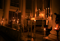 De Gulden (gouden) Mis is een indrukwekkend moment van voorbereiding op Kerstmis en de Lodewijkkerk is die ochtend alleen door kaarsen verlicht.